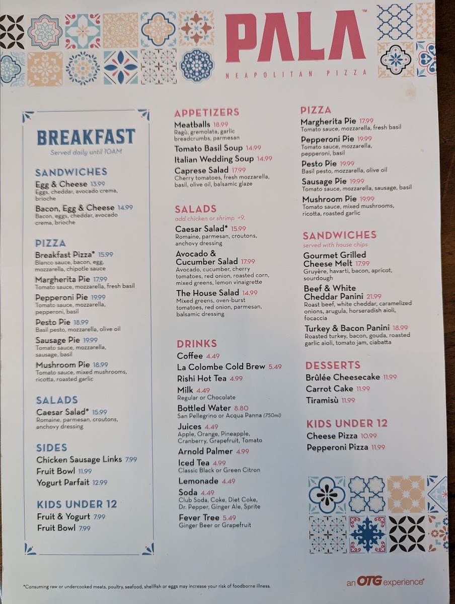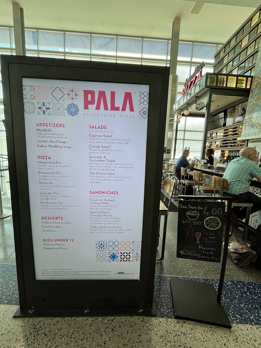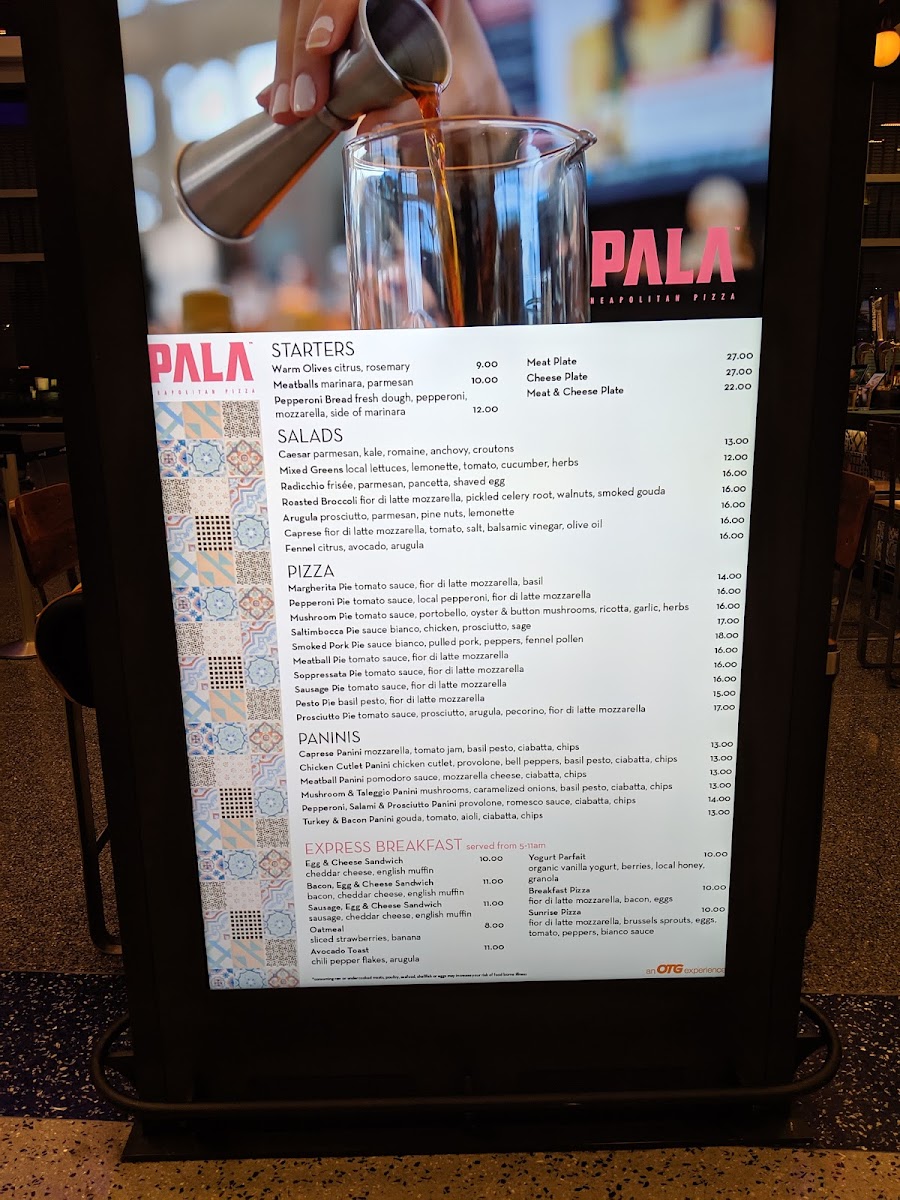 Overall, Pala’s menu fits smoothly into the airport atmosphere: it’s familiar without being rushed, flavorful without complexity, and balanced to meet both quick stops and moments of pause. The attentive, steady service complements the food and drinks, creating a calm spot to reset amid travel’s usual bustle.